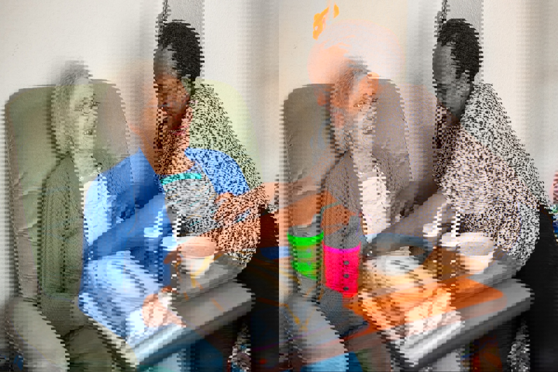 Older adults often experience decreased thirst sensation which can lead to dehydration. We make sure that our clients are drinking sufficient fluids throughout the day, which can include water, juices, and other healthy beverages.