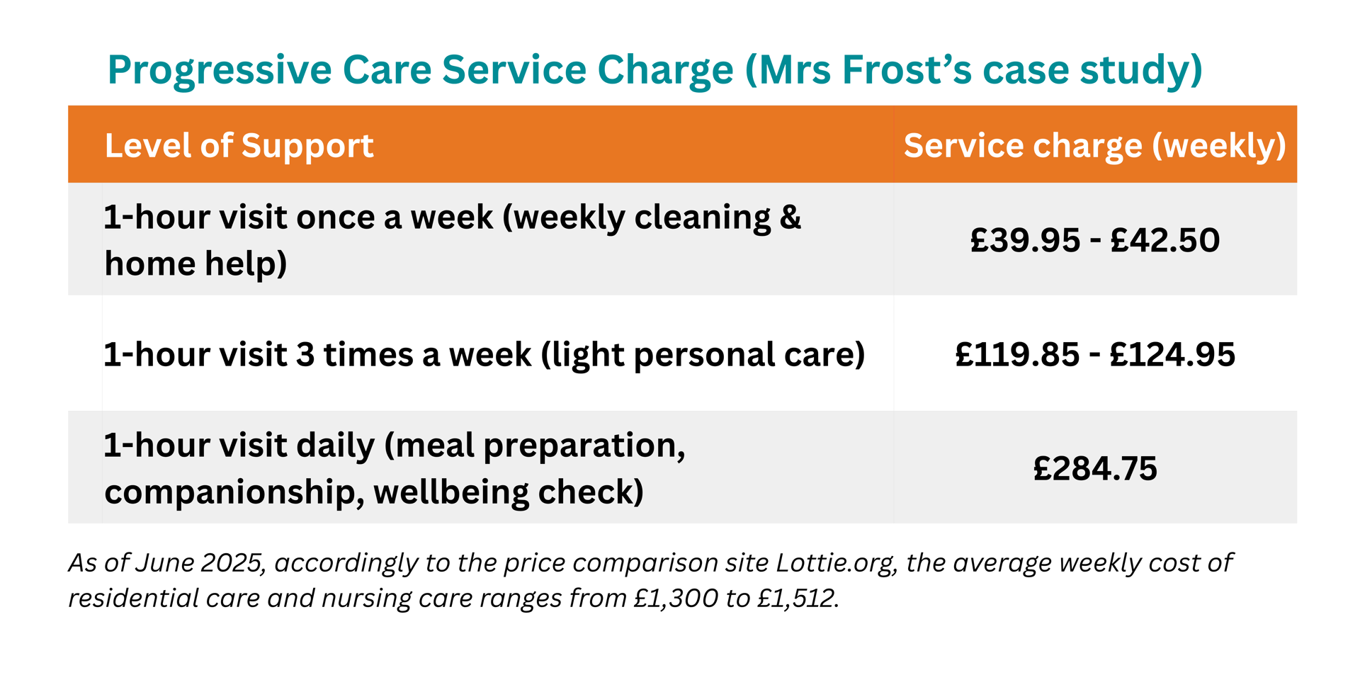 - Flexible support tailored to Mrs Frost’s pace and needs