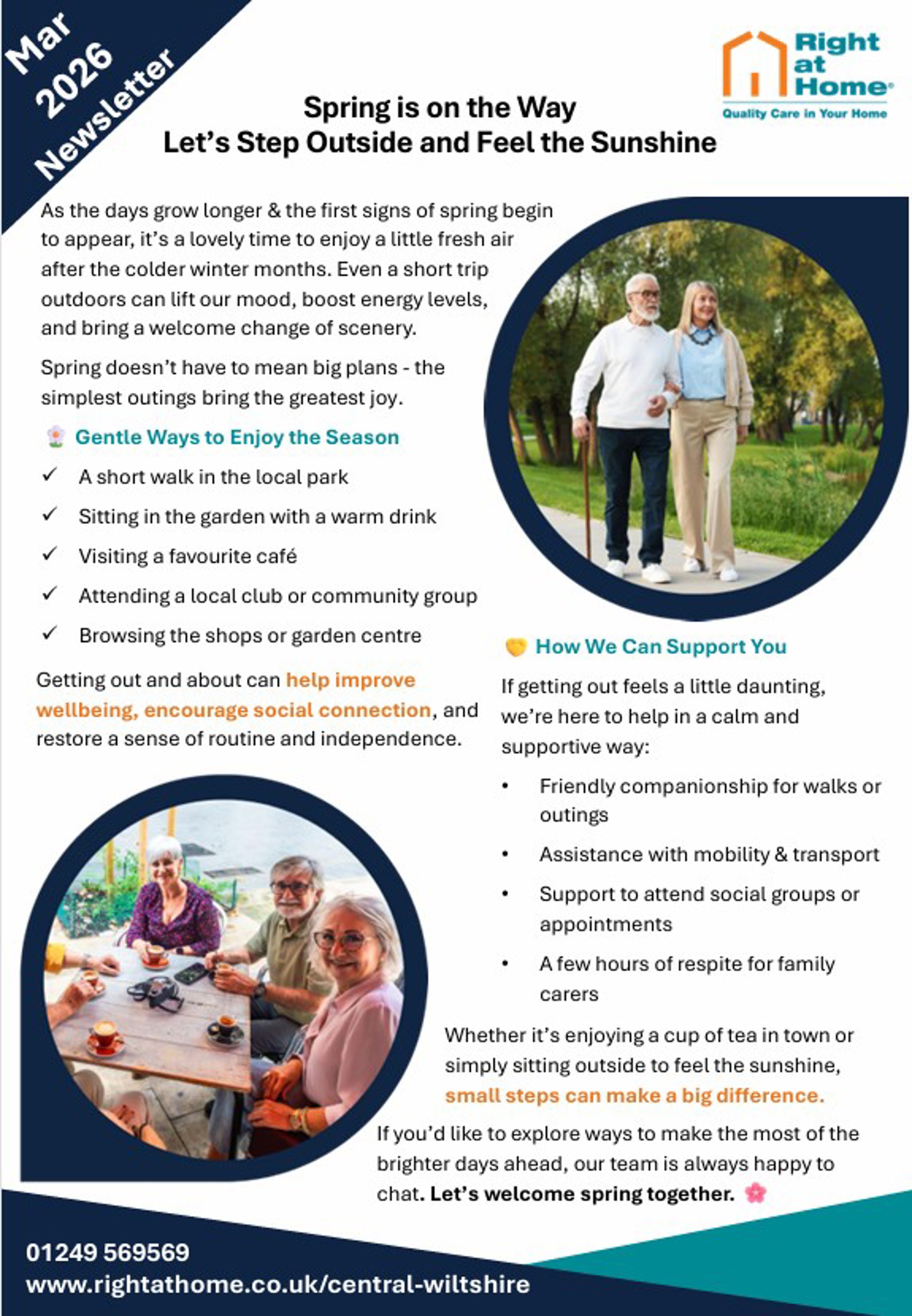Whether it’s enjoying a cup of tea in town or simply sitting outside to feel the sunshine, small steps can make a big difference. If you’d like to explore ways to make the most of the brighter days ahead, our team is always happy to chat.