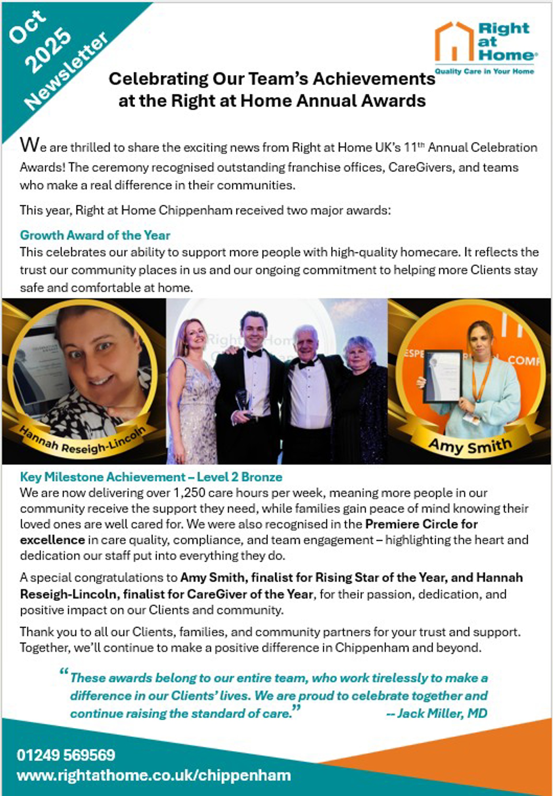 At Right at Home Chippenham, October has been a month full of celebration, recognition, and community spirit. From national awards to everyday Client achievements, we are so proud to share the latest news with you.
