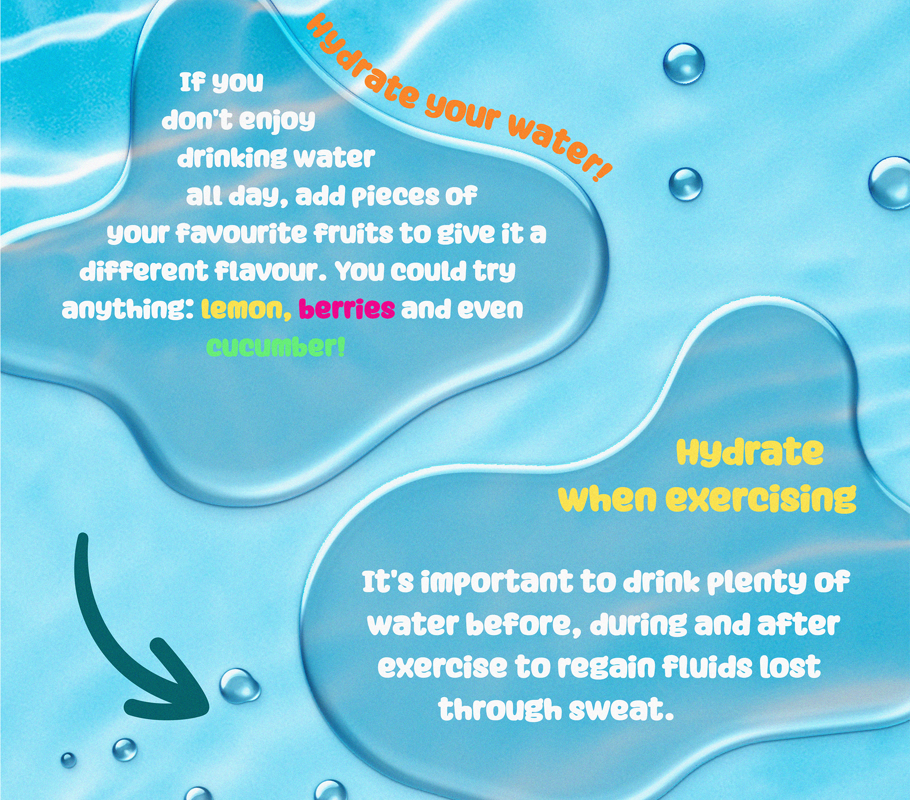It's important to drink plenty of water before, during and after exercise to regain fluids lost through sweat.