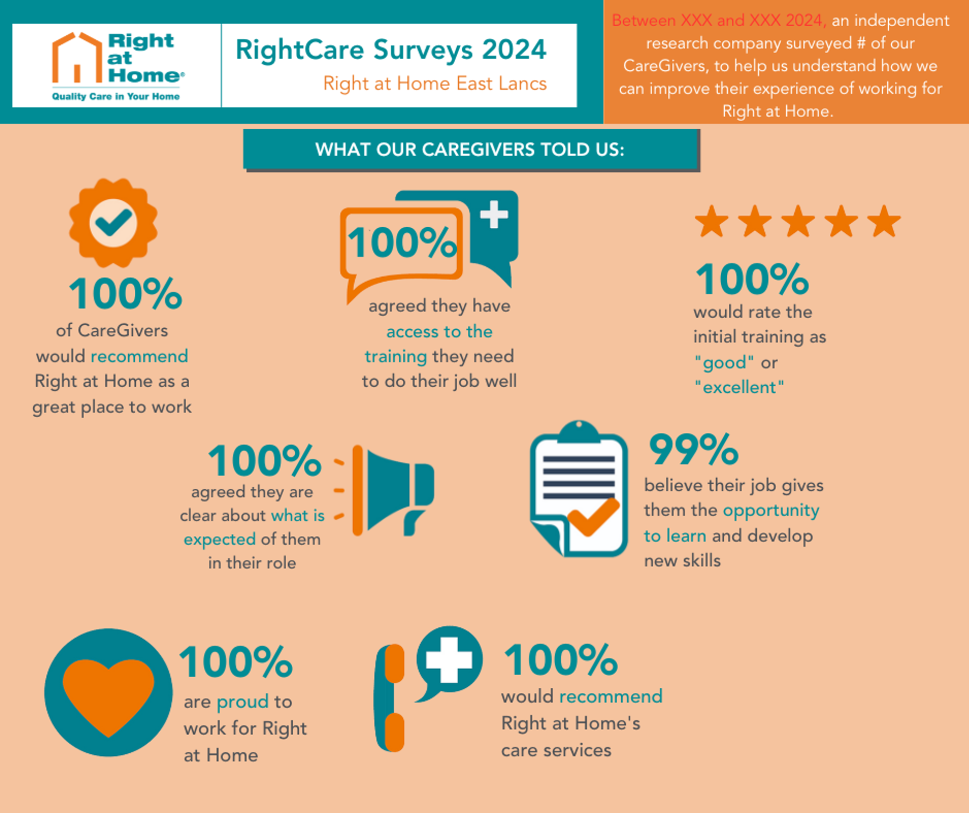 Right at Home East Lancashire & Ribble Valley is thrilled to announce another 100% employee satisfaction rating!