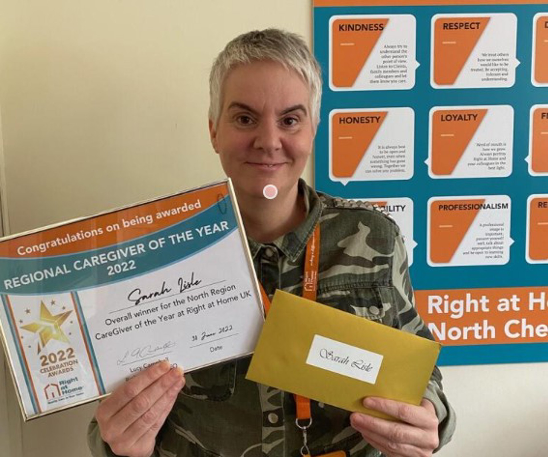 Sarah said: “I was delighted to be nominated, so to win is overwhelming! All the values that Right at Home stand for are what I believe in, so I love getting my head down at work and getting stuck in.
