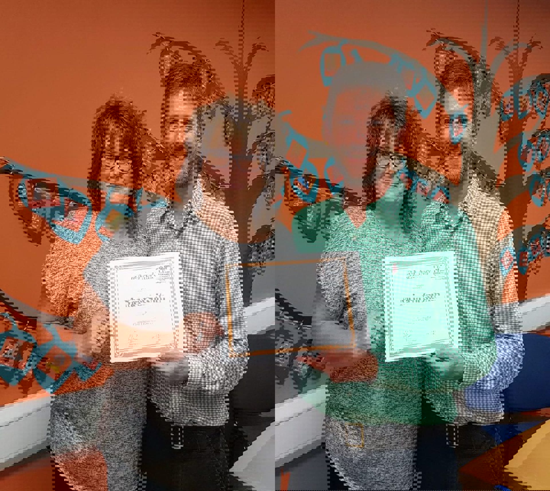 Marion Smith (pictured receiving a GEM award for Going the Extra Mile from MD Alastair Shanks) is passionate about her role and believes her “amazing job” as a caregiver in people’s homes would suit other local people looking for a more rewarding job.