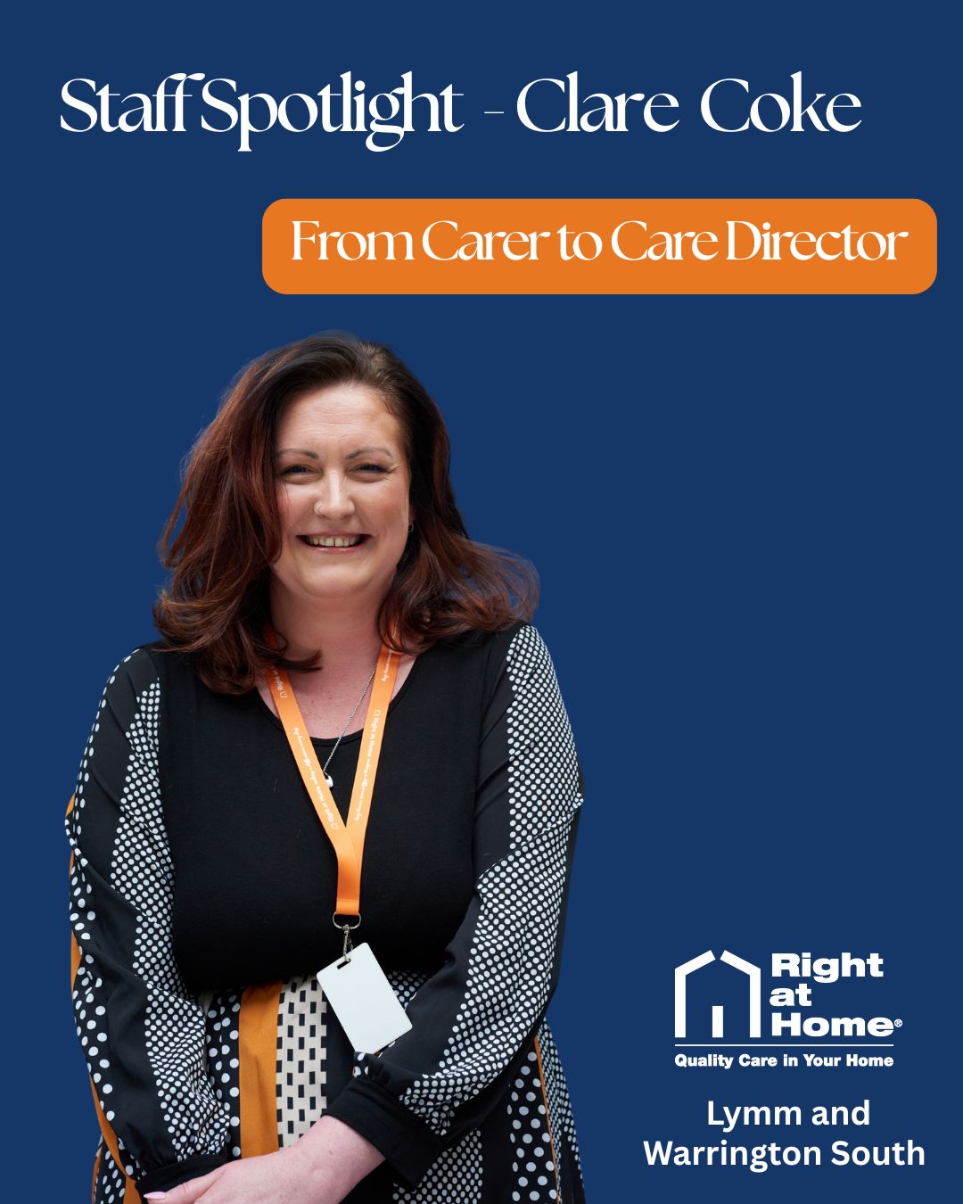 Today, Clare's outstanding contributions have been further recognised with her appointment as Care Director at Right at Home Lymm and Warrington South. In this role, she works closely with the Board, using her frontline experience and leadership expertise to help both clients and care professionals thrive across the organisation.