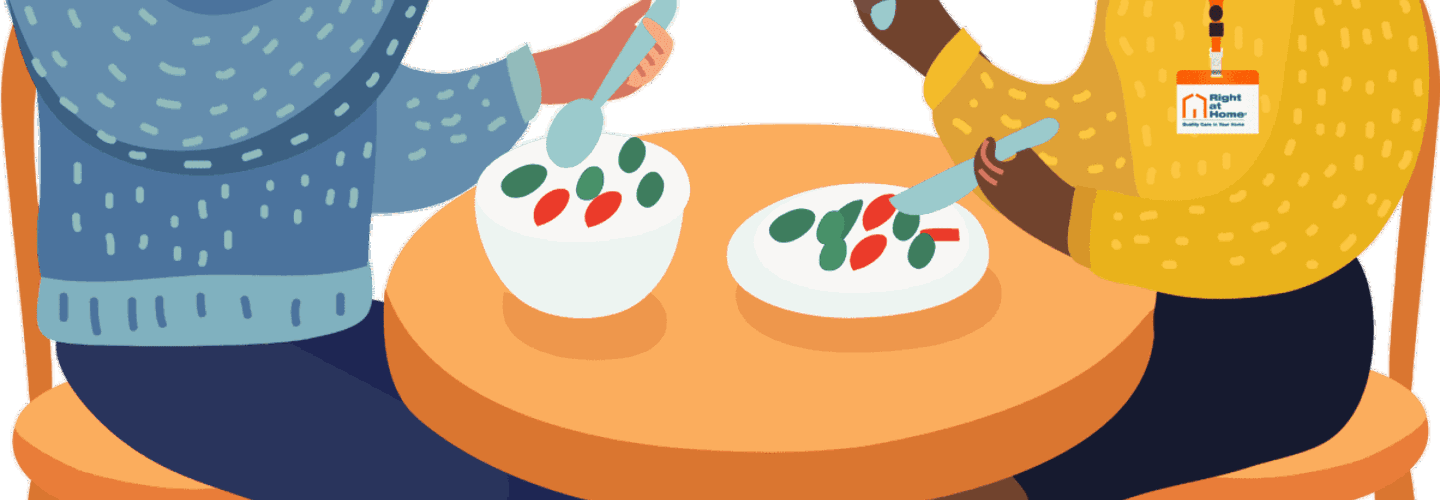 We know that healthy eating is a big part of life and can be a huge factor in a person’s wellbeing. If you are concerned that a family member or loved one may be struggling with their nutrition or dietary requirements, Right at Home can help. Our services can support you to create balanced and nourishing meals with our meal preparation service.