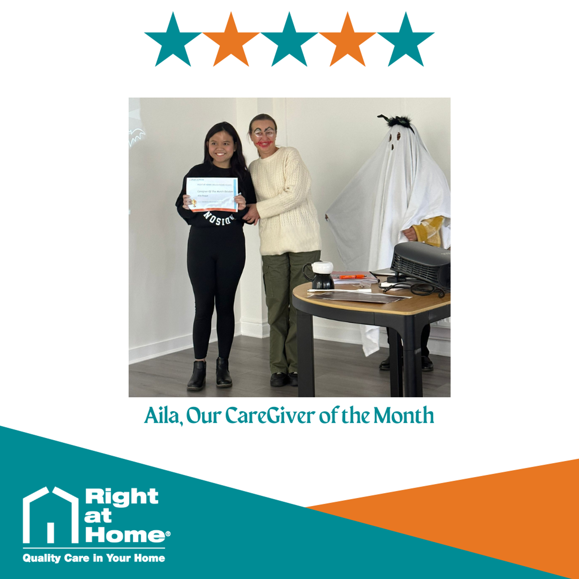 Aila, our Employee of the Month for Oct 2023, is celebrated for her immense compassion and unwavering commitment to caregiving. Congratulations and keep up the fantastic work!